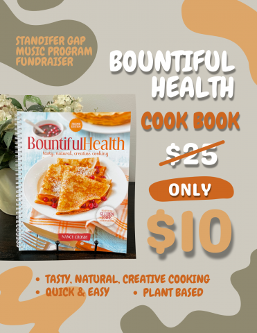 Help support our music program by purchasing this Bountiful Health cook book! They are only $10, so get one for your friends & family, as well as one for yourself! The book is full of delicious plant based recipes that you are sure to love! These cook books are available for purchase at the school office!